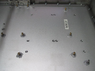 ドライブベイパネルのメンテナンス用にホルソーで穴あけ加工