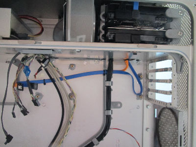 HDDドライブSATAケーブル接続用に27mmの穴を開けます 開けておくと、メンテナンスがとても楽です |